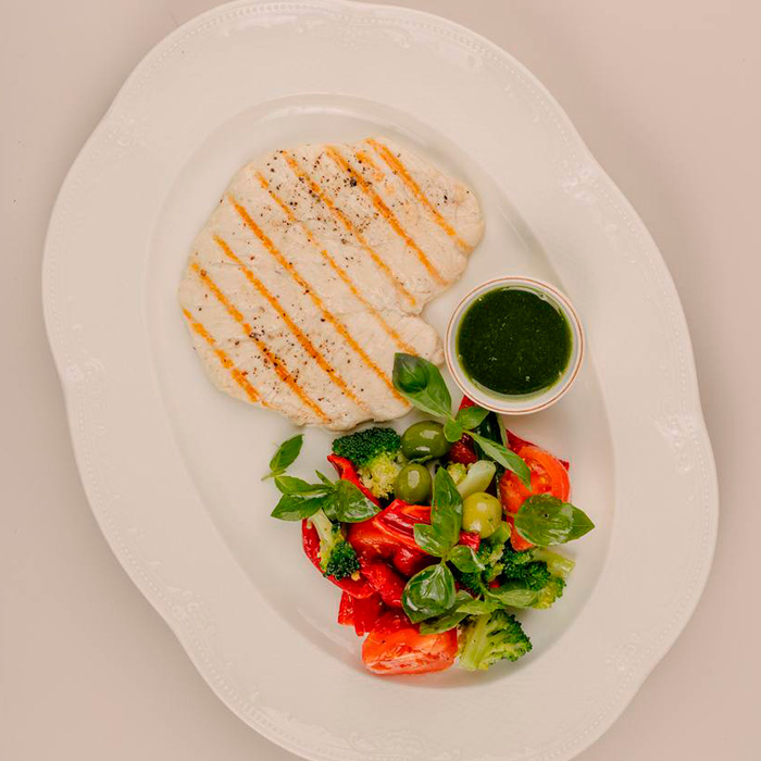 КБЖУ на Порцию: Жиры: 9, Белки: 70, Углеводы: 42, Ккал: 595